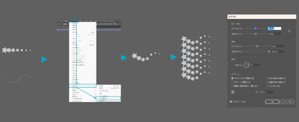 3.【オブジェクト/ブレンド/ブレンド軸を置き換え】を選択