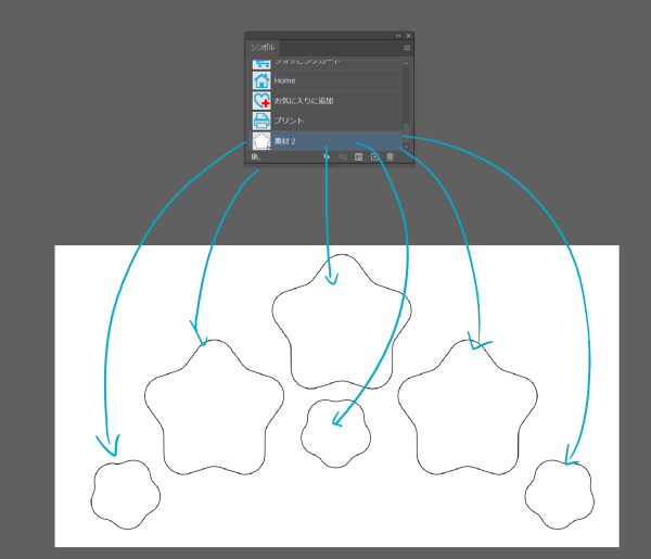 作った素材を他のとこで使いたい、同じ見た目の複数素材を一括で編集して反映させたい…そんな時に便利なのがシンボル機能です!