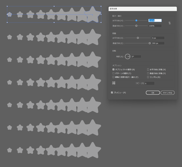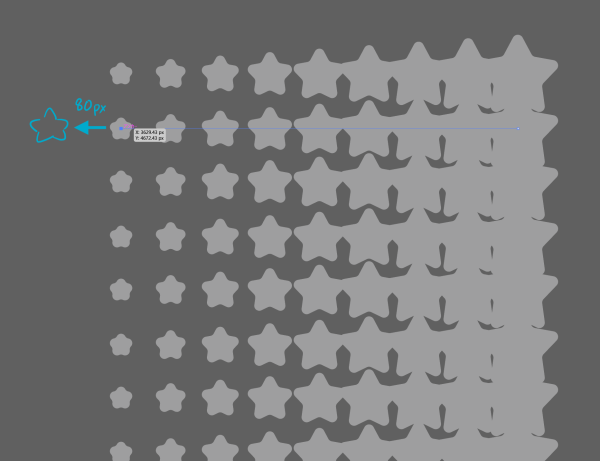 一番小さい星を左に80px移動させることで網点柄のような模様が交互に来る形に出来ます。
