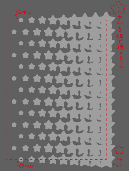 上下の星の中心を基準に長方形ツールでくり抜くことで、上下のパターンの繰り返しが綺麗になります。